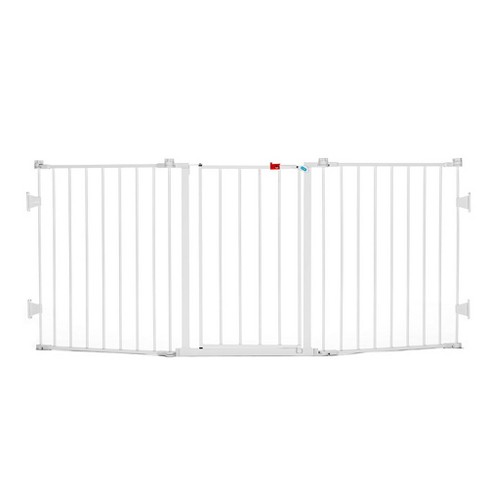 The extra wide baby gate configures to fit openings between 29 41 5 giving you a variety of options for door and hallway set ups.